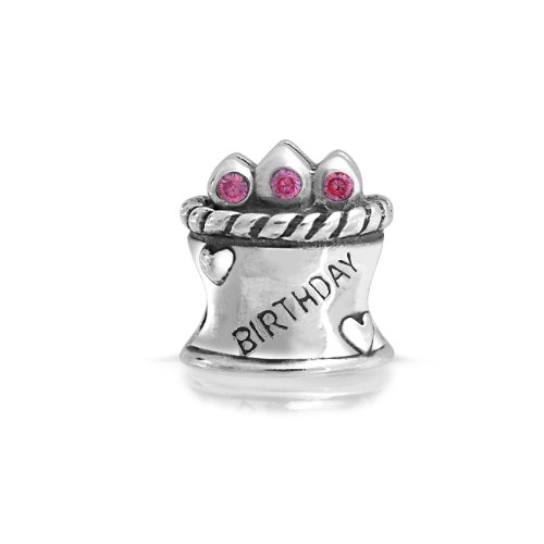 Bling Jewelry Happy Birthday Cake Hot Pink CZ 925 Sterling Silver Bead Charm Pandora Compatible Description | Sale - Review & Buy at Cheap Price